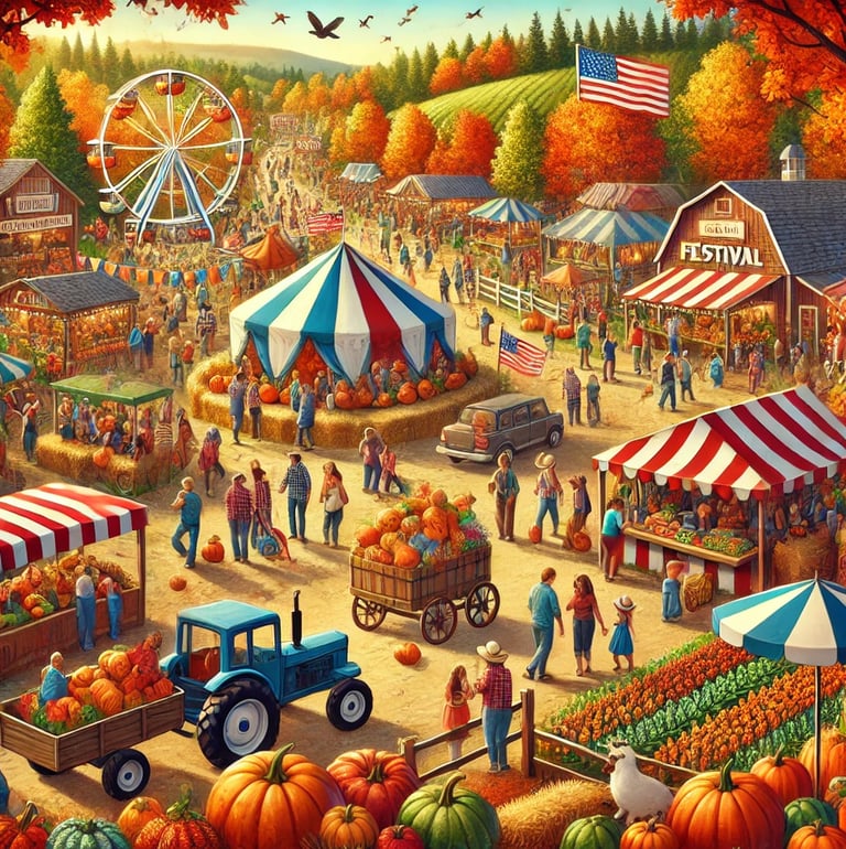 Feiras de Colheita: Feiras como a Topsfield Fair em Massachusetts e a State Fair of Texas oferecem uma variedade de atrações, desde exposições agrícolas até competições culinárias e shows ao vivo.